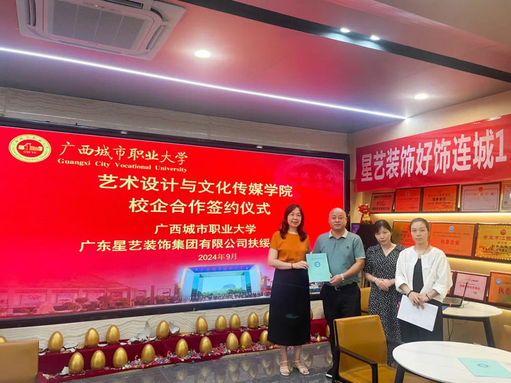 广东星艺装饰集团为一家中小型企业,2023年,广西城市大学艺术设计与文化传媒学院成功将其产品——“装饰材料与施工工艺工作册”引入课堂教学。此次引入的课程为《装饰材料与施工工艺》。