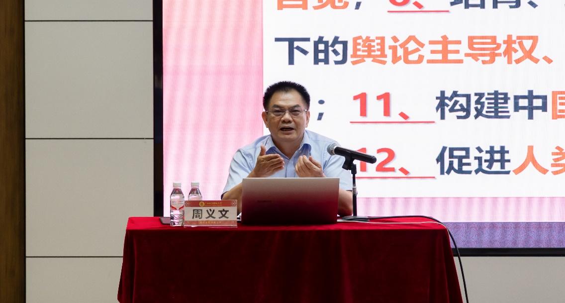 在培训中,周义文主任深入阐述了习近平文化思想的科学内涵、重大意义以及如何在实践中深化理解,要求党员师生要认真学习领会习近平文化思想,并从中汲取精神力量。