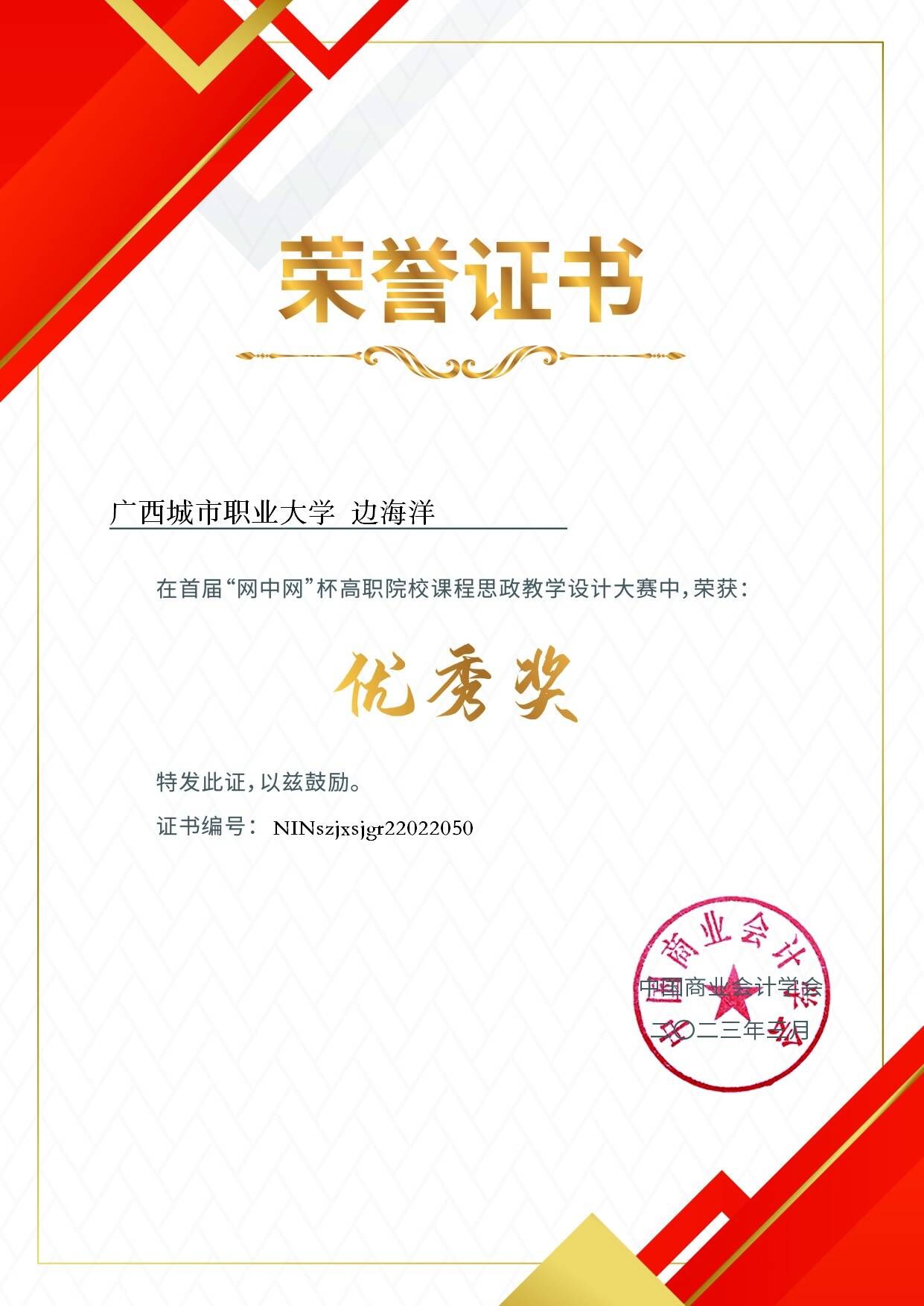 近日,由全国财经职业教育教学指导委员会、中国高等教育学会高等财经教育分会、中国会计学会会计教育专业委员会指导,中国商业会计学会、厦门网中网软件有限公司联合承办的首届“网中网”杯高职院校“课程思政”教学设计大赛落下帷幕,我校商学院教师积极参赛,荣获个人优秀奖3项、团队优秀奖1项、优秀组织奖1项。