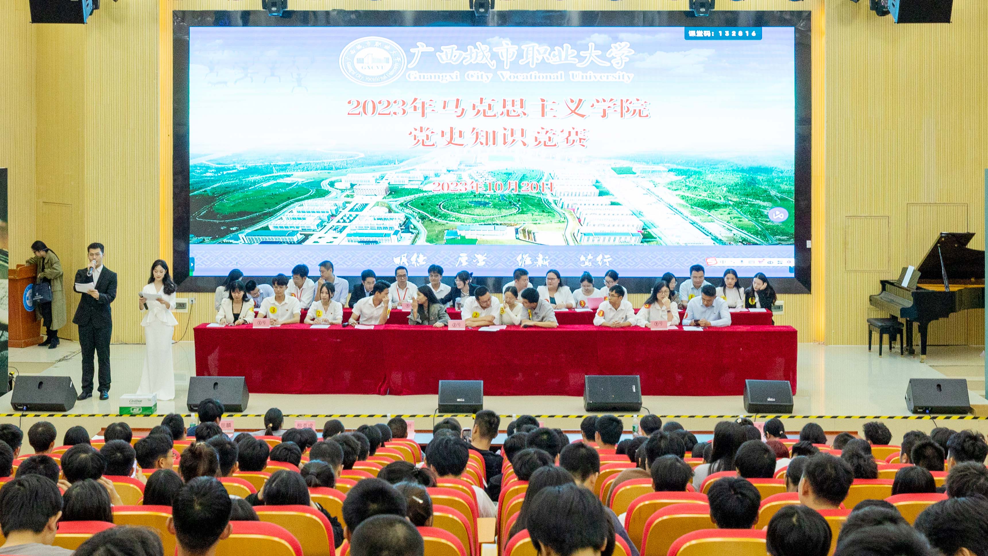 10月20日,由马克思主义学院、学校团委共同举办的教师组党史知识竞赛在崇左校区演奏大厅圆满完成。经过激烈的三轮竞赛环节,汽车工程学院代表队获得一等奖。学工部(处)副处长柳英成、智能工程学院党总支副书记徐建刚、信息工程学院副院长黄娟、教育学院副院长韦朋麟等领导老师出席竞赛。