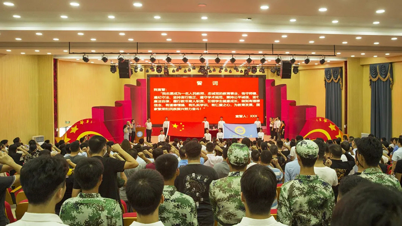 大会最后,全体教师代表共同宣誓,望广大教师牢记教育的初心和使命,不忘立德树人初心,不负党和人民重托,在三尺讲台上绽放光彩,为教育发展、国家繁荣和民族振兴努力奋斗!