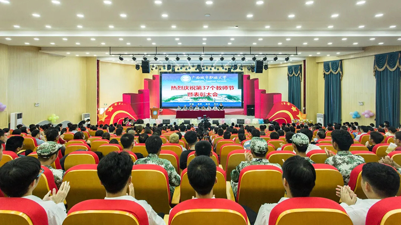 赓续百年初心,担当育人使命,今天我们迎来了第37个教师节。9月10日,为表彰先进,总结经验,凝心聚力担当教师使命,我校在崇左校区演奏大厅隆重举行庆祝第37个教师节暨表彰大会。党委书记伍鹏志、校长李中华及各学院、各部门领导出席大会,全体教师和学生代表参加大会。大会由伍鹏志书记主持。