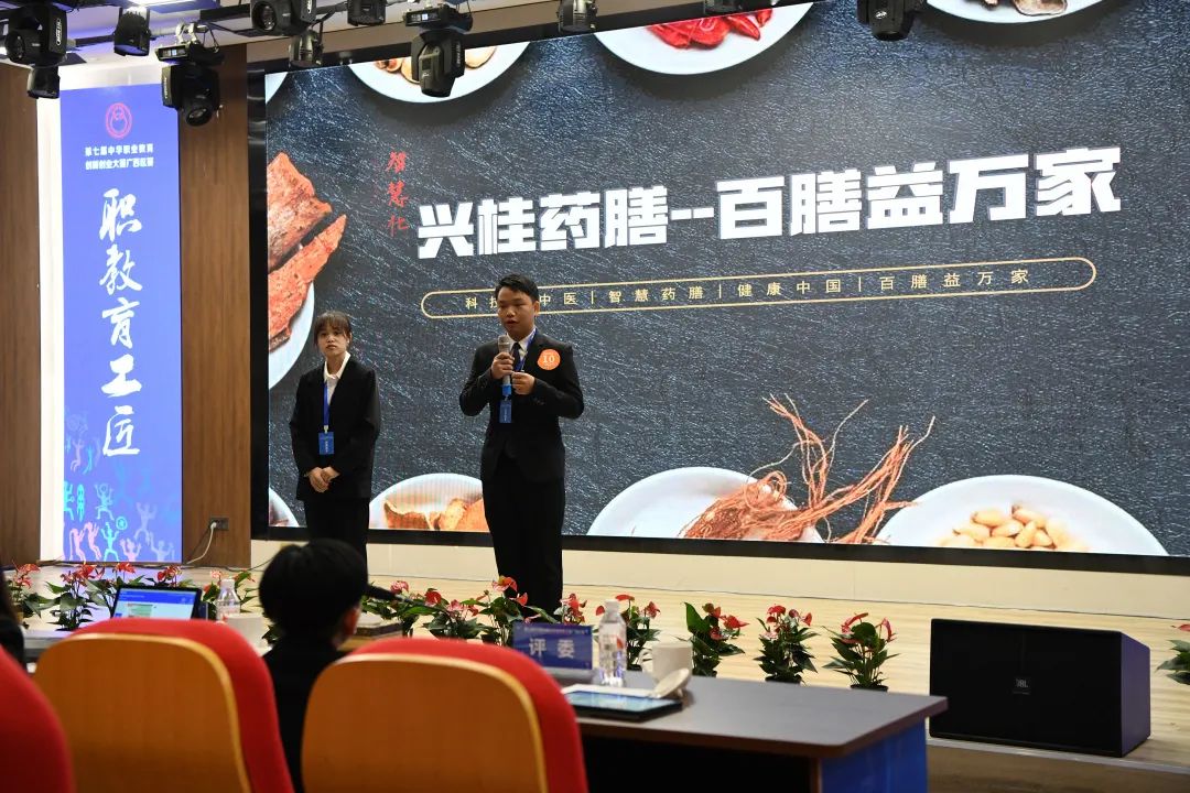 我校《“兴桂药膳——术后康复智慧药膳领先者”》项目团队路演现场