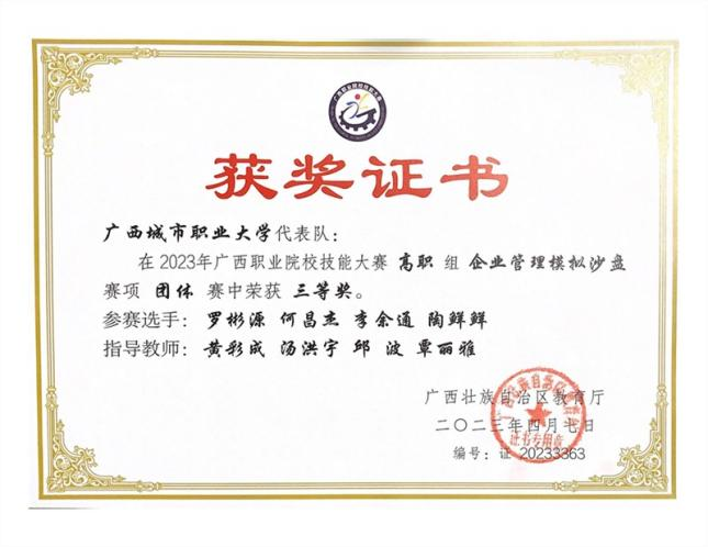 岗课赛证融通,增强学生职业能力与就业竞争力,学生在广西职业院校技能大赛企业管理赛项中多次获奖。