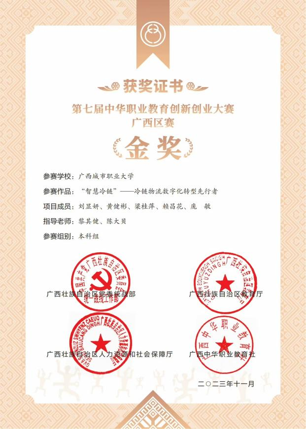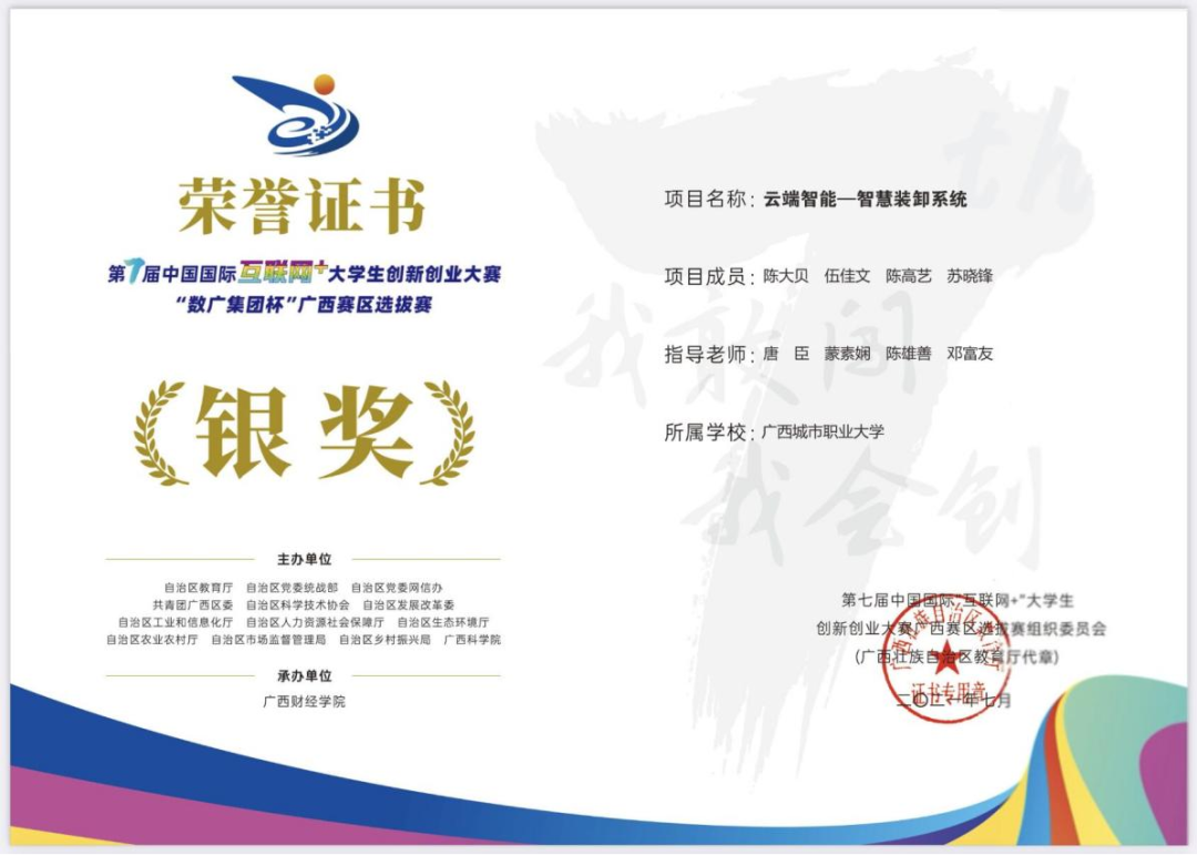 6.2022年9月 荣获第八届中国国际“互联网+”大学生创新创业大赛“数广集团杯”广西赛区选拔赛“铜奖 ”。