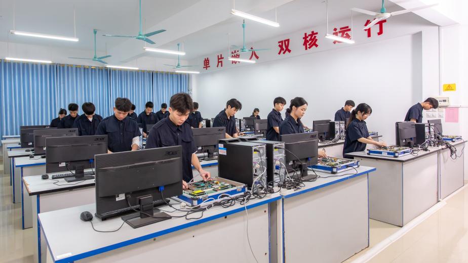 拥有能满足学生专业学习、教师专业教学研究和教学实施所需的教材、图书文献及数字教学资源。校内已建成电工电子实训室、数电模电实训室、单片机实训室、PLC实训室、电气自动化设备实训中心等电气自动化技术专业实训室,满足学生对实验(实训)项目的教学、职业技能等级证书、学科技能竞赛培训的需要。
