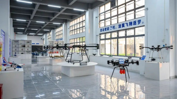 集团推行 “前店后厂” 模式,将课堂与生产、市场紧密相连。依托无人机生产线,自主研发的 S-50 植保无人机等 10 款机型已实现量产,广泛服务于崇左 30 万亩糖料蔗基地的植保作业;嵌入式机器人生产线则产出智能语音机器小狗、巡检机器人等多款产品,其中校园巡检机器人已投入校内安全巡逻、环境监测等实际场景,真正做到 “产品从校园走出,服务于生活场景”。